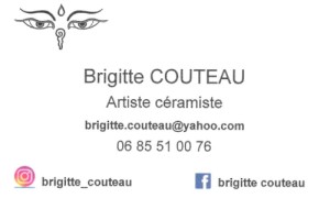 Brigitte Couteau est une céramiste, toutes ses pièces en grès ou porcelaine sont faites à la main et on peut remarquer une grande attention donnée aux couleurs aux émaux et à la finition. Son attirance pour le bleu paraît évidente.