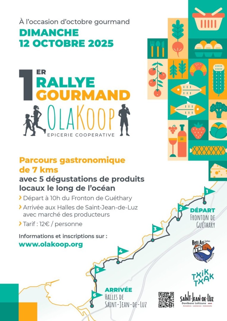 Un rallye gourmand de 7km, départ du fronton de Guéthary à 10h, arrivée aux Halles de Saint Jean de Luz.